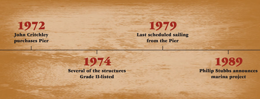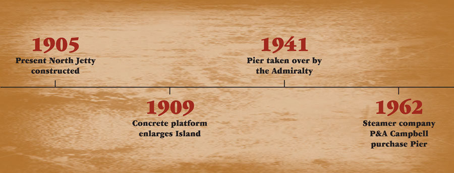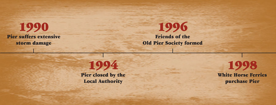 World War II wasn't kind to Birnbeck, either. In 1941, the pier was taken over by the Admiralty and closed to the public - with the fairground and all amusement rides dismantled and removed - before being commissioned as HMS Birnbeck, a secret facility for weapons testing. Serious damage was caused to the island when a Wellington Bomber, operating out of nearby RAF Locking, inadvertently released a dummy mine whilst flying overhead. When hostilities were over, the pier was handed back to its rightful owners and, whilst the steamer service was resumed, Birnbeck became a much more sedate place, with just a refreshment room and no amusements (apart from a weekly visit from the British Legion Band!). The pier then passed through several owners' hands, including (1962) P&A Campbell (the steamer-operating company), (1972) John Critchley (under whom the pier enjoyed a short-lived renaissance), (1989) Philip Stubbs (whose plans for a multi-million pound marina complex were halted by the Nature Conservation Council), (1998) White Horse Ferries (who restored Pier View, formerly the offices of P&A Campbell and Muffins Café, and now the home of the Friends of the Old Pier Society) and (2006) Urban Splash (who held an international architectural competition, the winner of which included a mixed-use redevelopment, featuring a hotel, leisure and residential accommodation). During that 44-year period, other landmarks included: (1974) the Department of the Environment granting the pier Grade II-listed status, (1979) the MV Balmoral making the last scheduled sailing from the pier (bringing an end to 92 years of service in the Bristol Channel by P&A Campbell), (1990) the pier suffered extensive storm damage and (1994) was closed to the public by the local authority. Today, the Old Pier is deteriorating rapidly, and the only persons allowed onto the property, other than the owners, are the RNLI crew who utilise an area of replaced decking, purchased with their own funds at an initial cost in excess of £20,000. The only other structural work of note carried out in recent times took place in March 2010, when - thanks to an English Heritage Lottery grant - the cast iron trestles that were in most need of remedial work (the four nearest to the island) were refurbished to a high standard. |